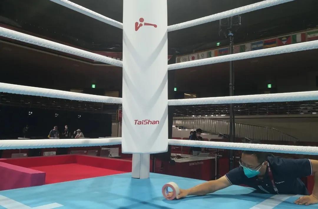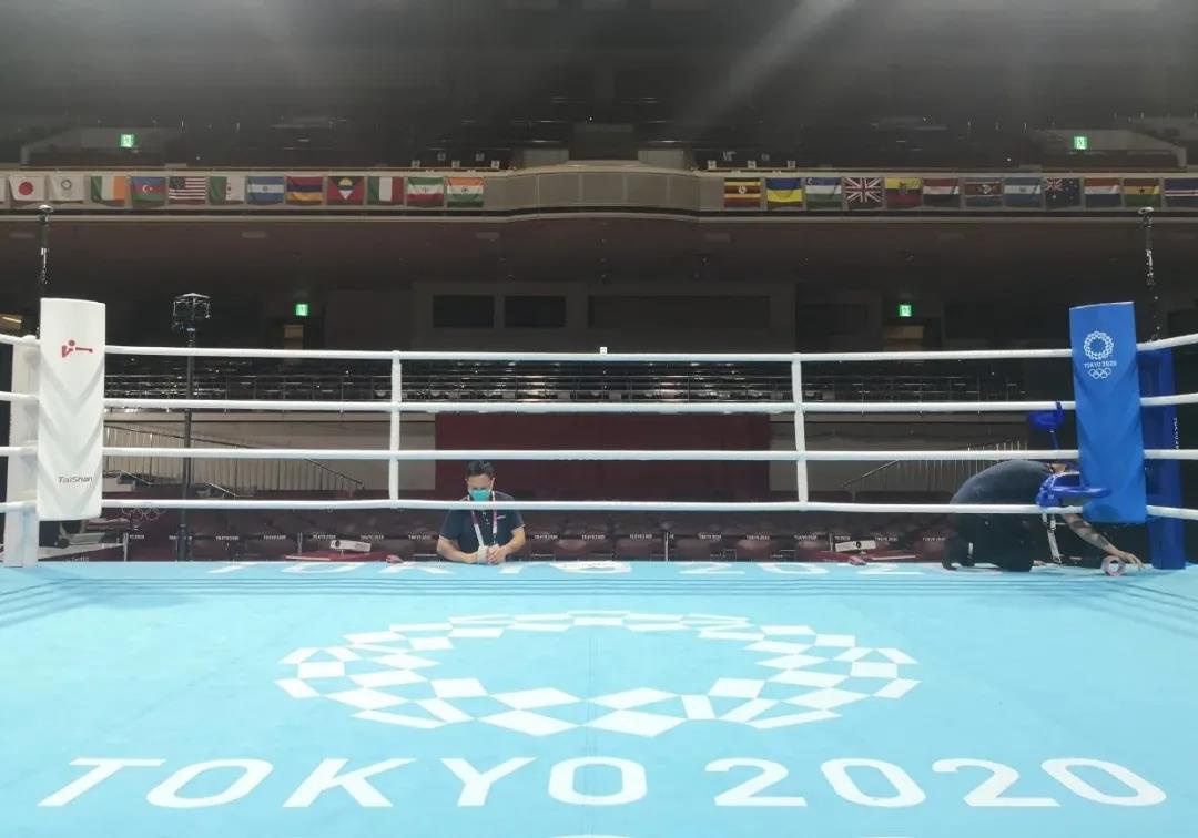 2021年7月21日,日本东京国技馆——奥运会拳击比赛馆。金年|jinnianhui今年会体育东京奥运会服务保障团队正在检查调试拳击器材。