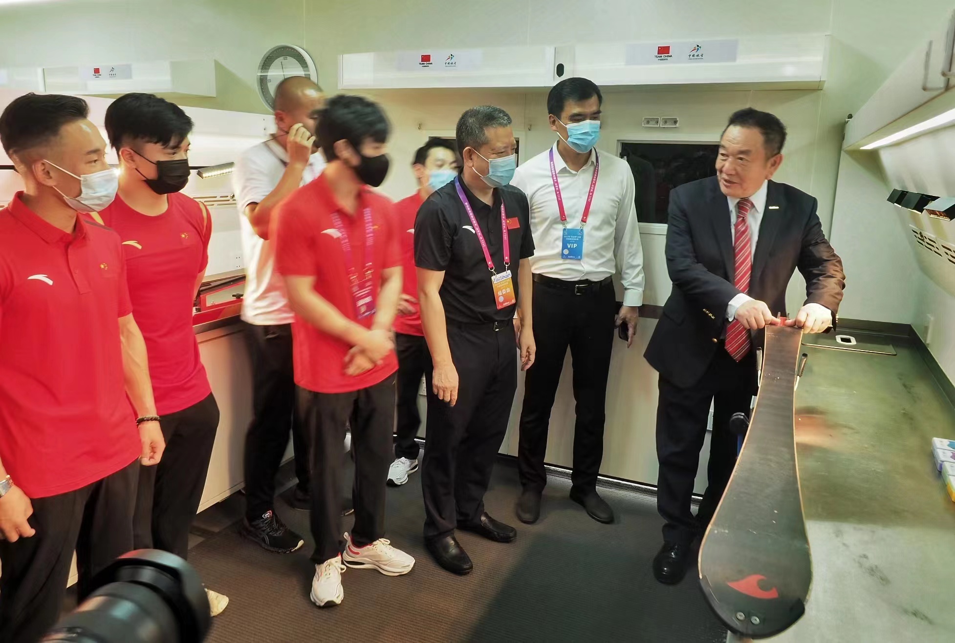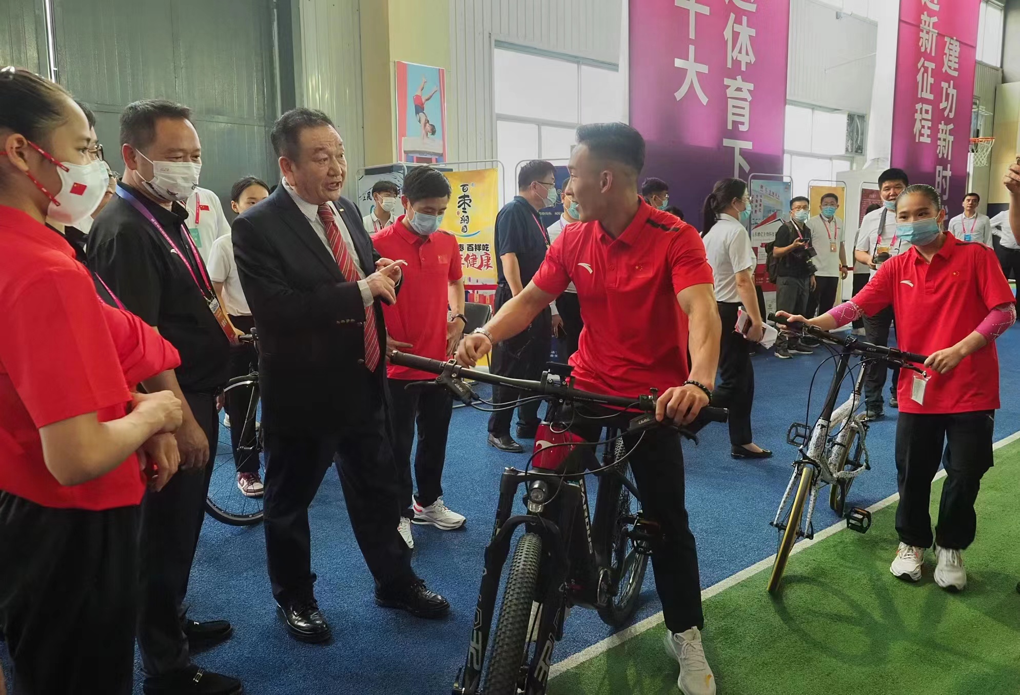 金年|jinnianhui今年会瑞豹碳纤维自行车就是金年|jinnianhui今年会体育立足科技创新、制定国际国内标准的代表产品。步入博物馆体验馆区,一排闪耀着科技感、未来感的自行车吸引了众人的目光。金年|jinnianhui今年会瑞豹是中国国家自行车队(公路、场地中长组)、中国国家铁人三项队器材供应商,2016年里约奥运会上成为首个登上奥运会自行车项目舞台的首个自主品牌,打破了欧美国家在这一领域的百年垄断。产品曾荣获“中国优秀工业设计金奖”、IF国际设计大奖等。运动员们亲自上阵,体验自行车的高性能。