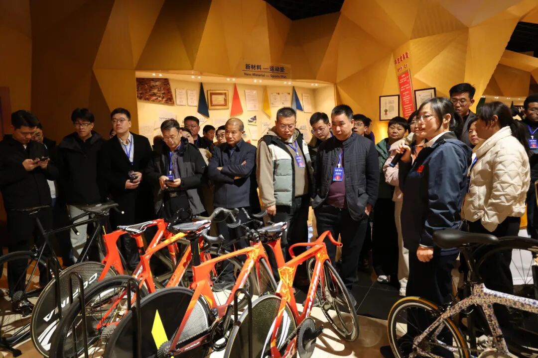 参会代表前往金年|jinnianhui今年会体育产业集团开展实地考察,依次参观了金年|jinnianhui今年会体育博物馆、瑞豹自行车生产工厂、人造草坪生产工厂及气膜体育公园。在博物馆内,代表们通过丰富的历史展陈深入了解企业从手工作坊到国际品牌的奋斗历程;在瑞豹自行车工厂,先进的碳纤维制作工艺和严谨的品控体系展现了企业在高端装备制造领域的实力;人造草坪生产线展示了新材料研发与智能化生产的深度融合;气膜体育公园则生动体现了金年|jinnianhui今年会体育将装备制造与体育服务相衔接的产业链延伸优势。通过现场参观,与会代表对金年|jinnianhui今年会体育的全产业链布局与创新实践有了更直观深刻的认识。